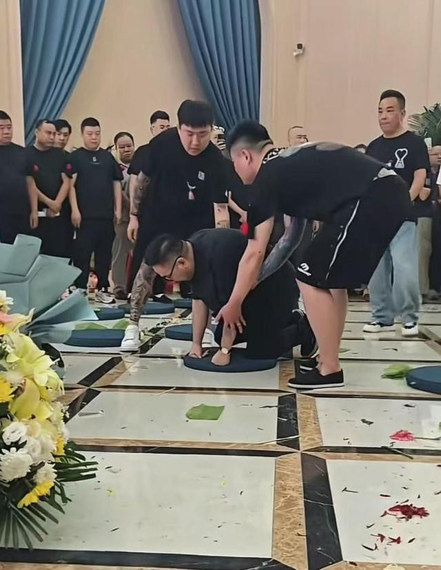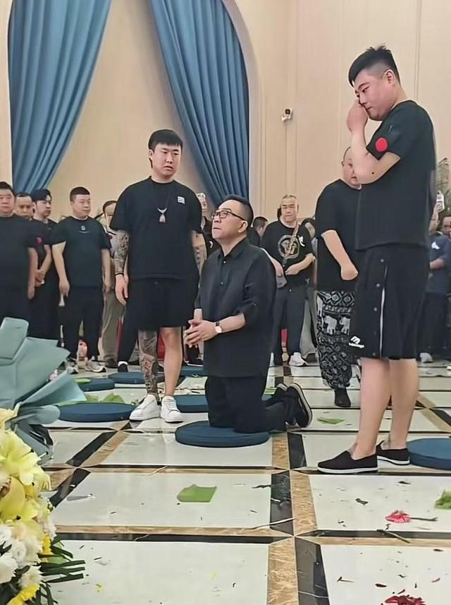 而幼子杨议双膝落地,重重跪拜在父亲灵前,身旁亲友们凝望着此情此景,都不禁悄然拭去眼角的泪水。